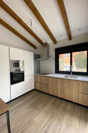 Bonita vivienda unifamiliar adosada de 150 m² y dos plantas. Esta vivienda combina la cubierta inclinada de teja con la fachada blanca y con toques de madera, que le dan un toque cálido y acogedor, haciendo una perfecta combinación entre lo tradicional y lo moderno.