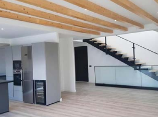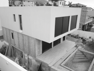 Fachada dual innovadora - Planta baja revestida en paneles Viroc, planta primera revocada en blanco