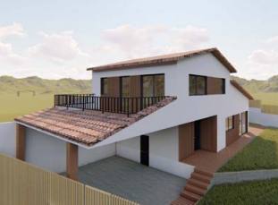 Bonita vivienda unifamiliar adosada de 150 m² y dos plantas. Esta vivienda combina la cubierta inclinada de teja con la fachada blanca y con toques de madera, que le dan un toque cálido y acogedor, haciendo una perfecta combinación entre lo tradicional y lo moderno.